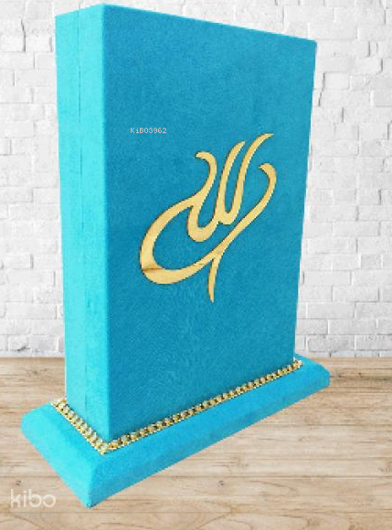 Orta Boy Kadife Kutulu Kuranı Kerim Hediyelik Kutuda Mavi